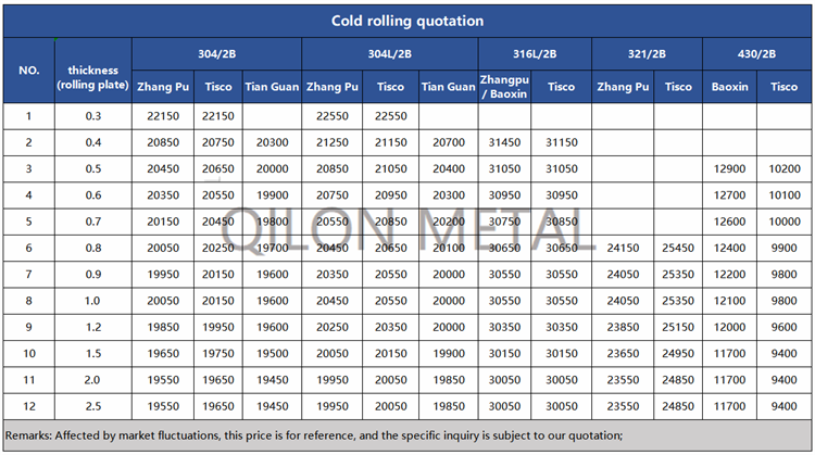 Quotation for cold rolled stainless steel 2022.6.21