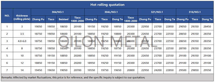 Quotation for hot rolled stainless steel 2022.6.24
