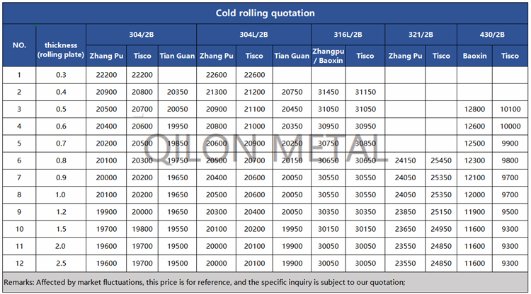 Quotation for cold rolled stainless steel 2022.6.24