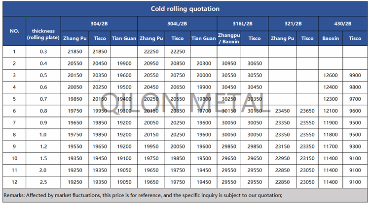 Quotation for cold rolled stainless steel 2022.6.28
