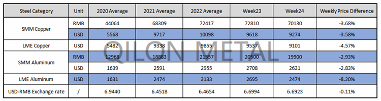 SMM Copper and Aluminum weekly price on the week 24th, 2022