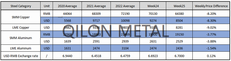 SMM Copper and Aluminum weekly price on the week 25th, 2022