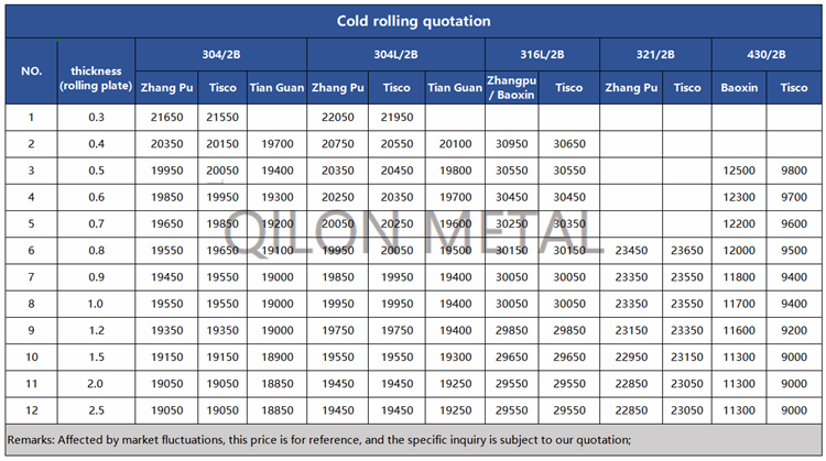 Quotation for cold rolled stainless steel 2022.6.30