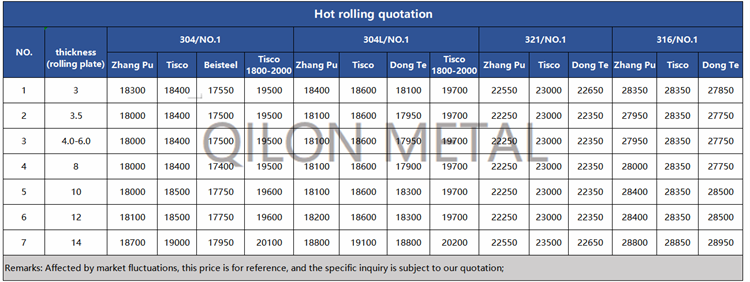 Quotation for hot rolled stainless steel 2022.7.1