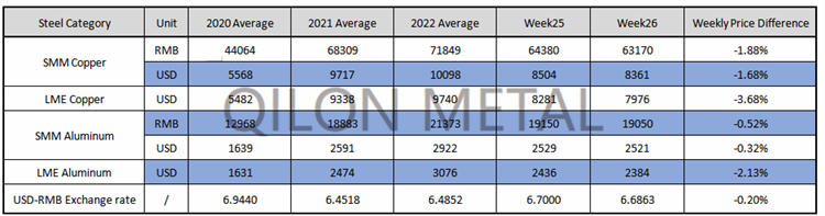 SMM Copper and Aluminum weekly price on the week 26th, 2022