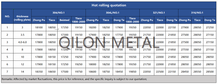 Quotation for hot rolled stainless steel 2022.7.12