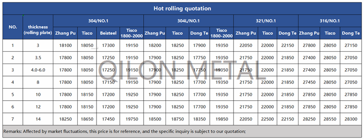 Quotation for hot rolled stainless steel 2022.7.14