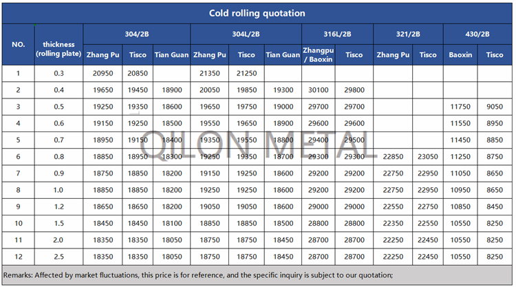 Quotation for cold rolled stainless steel 2022.7.15