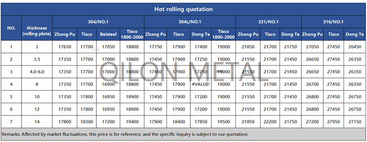 Quotation for hot rolled stainless steel 2022.7.20
