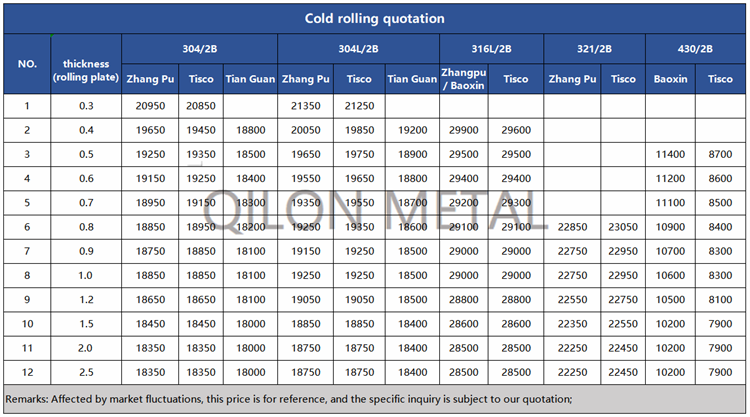 Quotation for cold rolled stainless steel 2022.7.25