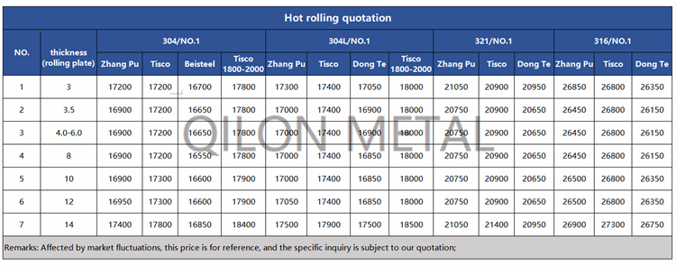 Quotation for hot rolled stainless steel 2022.7.29