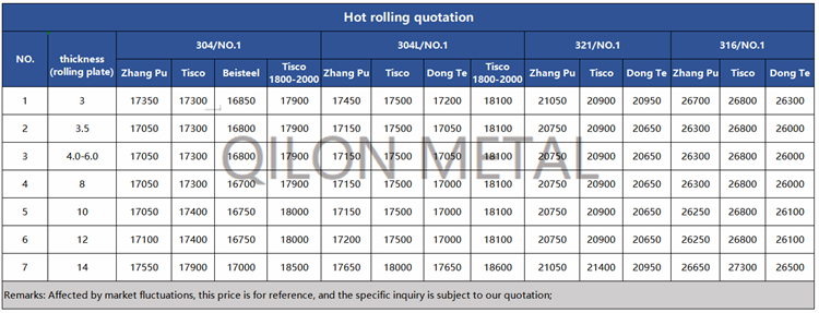 Quotation for hot rolled stainless steel 2022.8.3