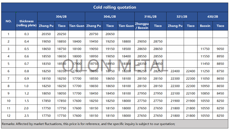 Quotation for cold rolled stainless steel 2022.8.6