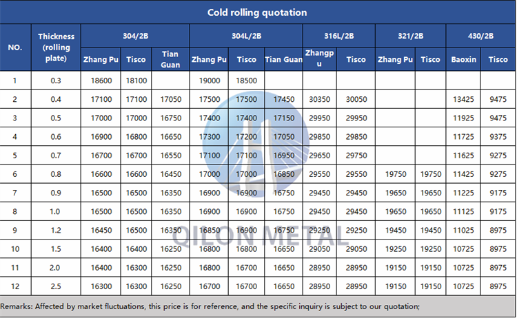 Quotation for cold rolled stainless steel 2023.9.14