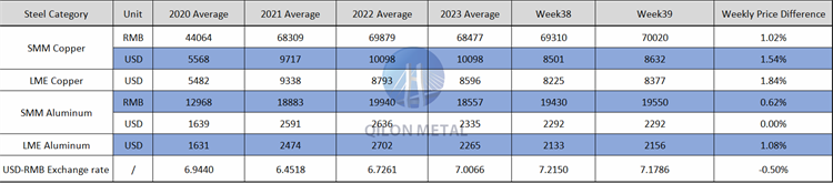 SMM Copper and Aluminum weekly price on the week 38th, 2023