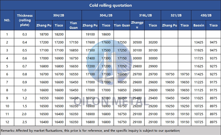 Quotation for cold rolled stainless steel 2023.9.18