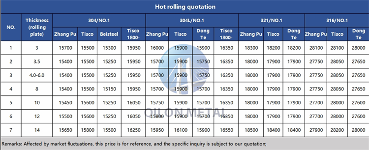 Quotation for hot rolled stainless steel 2023.9.21