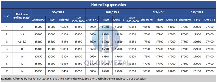 Quotation for hot rolled stainless steel 2023.10.9