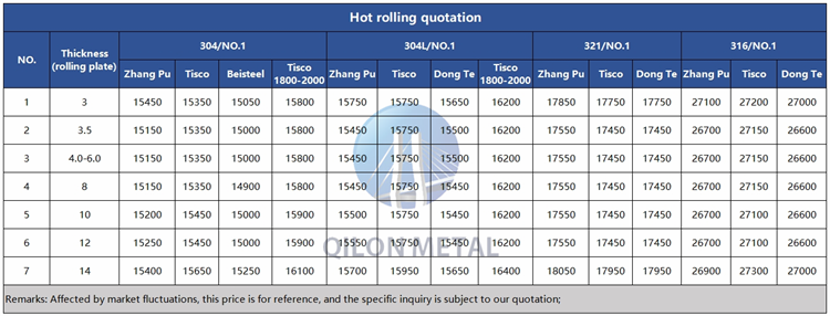 Quotation for hot rolled stainless steel 2023.10.12