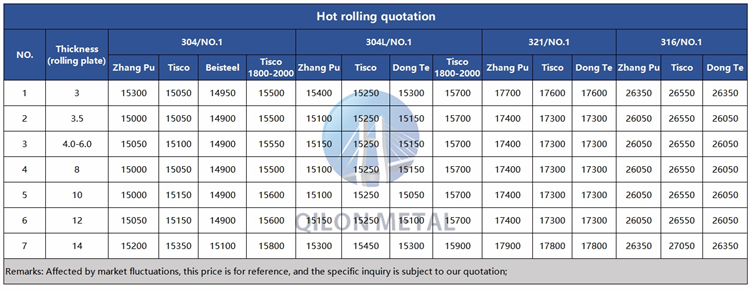 Quotation for hot rolled stainless steel 2023.10.27