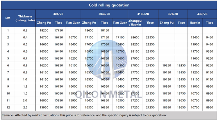 Quotation for cold rolled stainless steel 2023.10.31