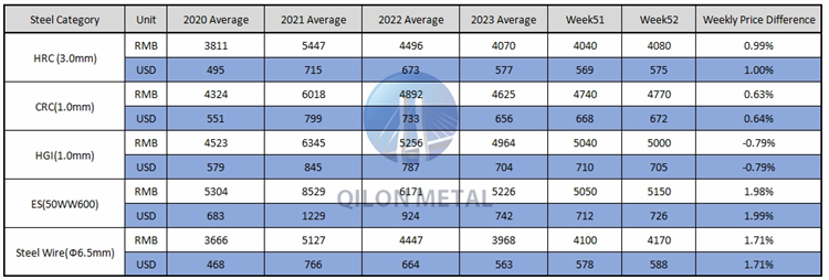 Carbon Steel price on the week 52th, 2023