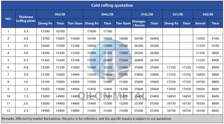 Quotation for cold rolled stainless steel 2024.1.2
