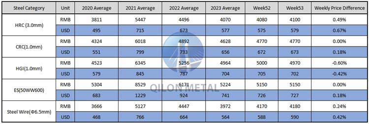 Carbon Steel price on the week 53th, 2023