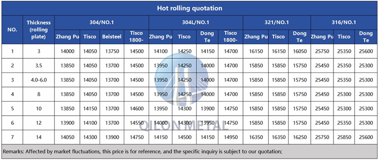 Quotation for hot rolled stainless steel 2024.1.10