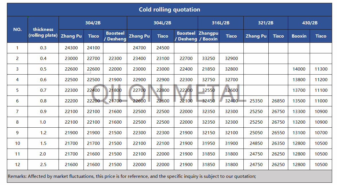 Quotation for cold rolled stainless steel 2022.4.11