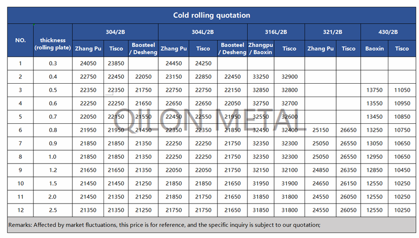 Quotation for cold rolled stainless steel 2022.4.19