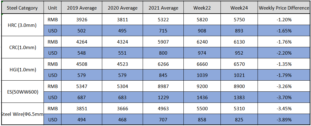 CARBON STEEL PRICE TREND TILL 18TH OF JUNE 2021