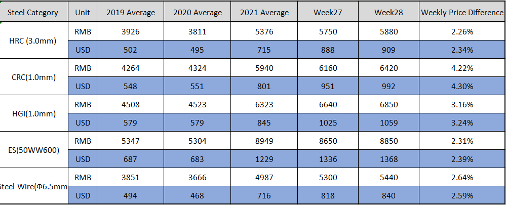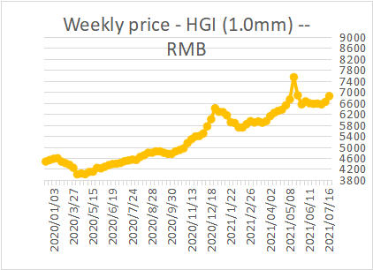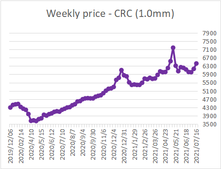 CARBON STEEL PRICE TREND TILL 16TH OF JULY 2021
