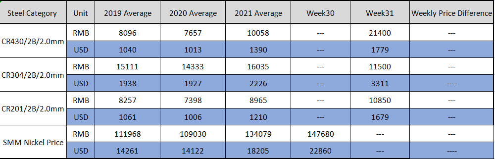 STAINLESS STEEL TREND TILL 6TH OF AUGUST 2021